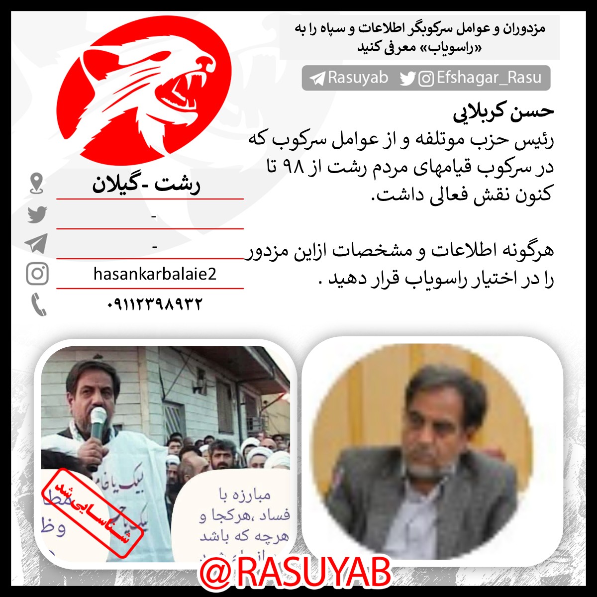رئیس حزب موتلفه و از عوامل سرکوب که در سرکوب قیامهای مردم رشت از ۹۸ تا کنون نقش فعالی داشت.