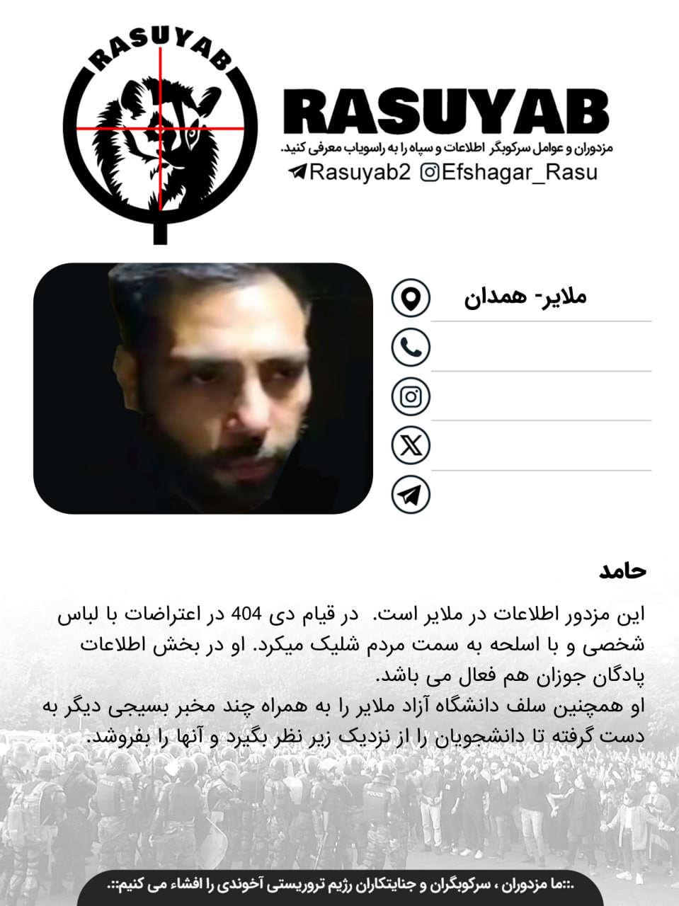 هرگونه اطلاعات و مشخصات بیشتر از این مزدور را در اختیار راسویاب قرار دهید .