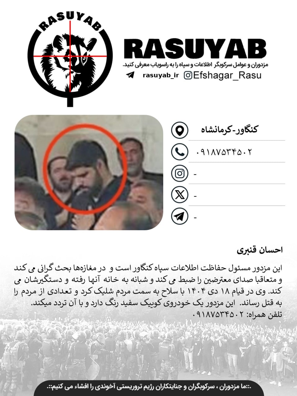هرگونه اطلاعات و مشخصات بیشتر از این مزدور را در اختیار راسویاب قرار دهید .